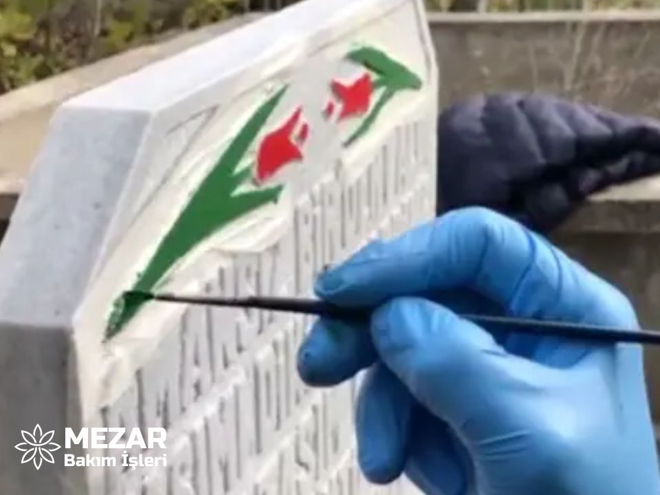 Mezar boyama nedir ne için yapılır diyenler için kısa bir bilgi paylaşımı yapalım. Özellikle mezar taşlarına yazılan yazılar zaman içinde silinir bozulur okunmayacak hale gelir. Böyle durumlarda bu yazıların yeniden yazılması gerekir ve bu işlemi yapan bizim gibi tecrübeleri firmalar ya da tek başına çalışanlar vardır. Bu işi yapanlara ulaştığınız da silinen yazılar yeniden boya ile yazılır ve süsleme varsa onlarda kendi renklerinde yeniden boyanır.
